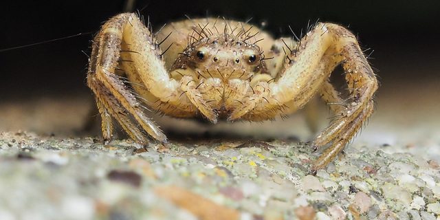 I went back to my camera bag to put on some extension tubes and push my luck, but the crab spider had disappeared while I did. Thankfully this wolf spider obliged for some more stacking. You can clearly see it has eyes on the back of its head for pretty much all round vision!